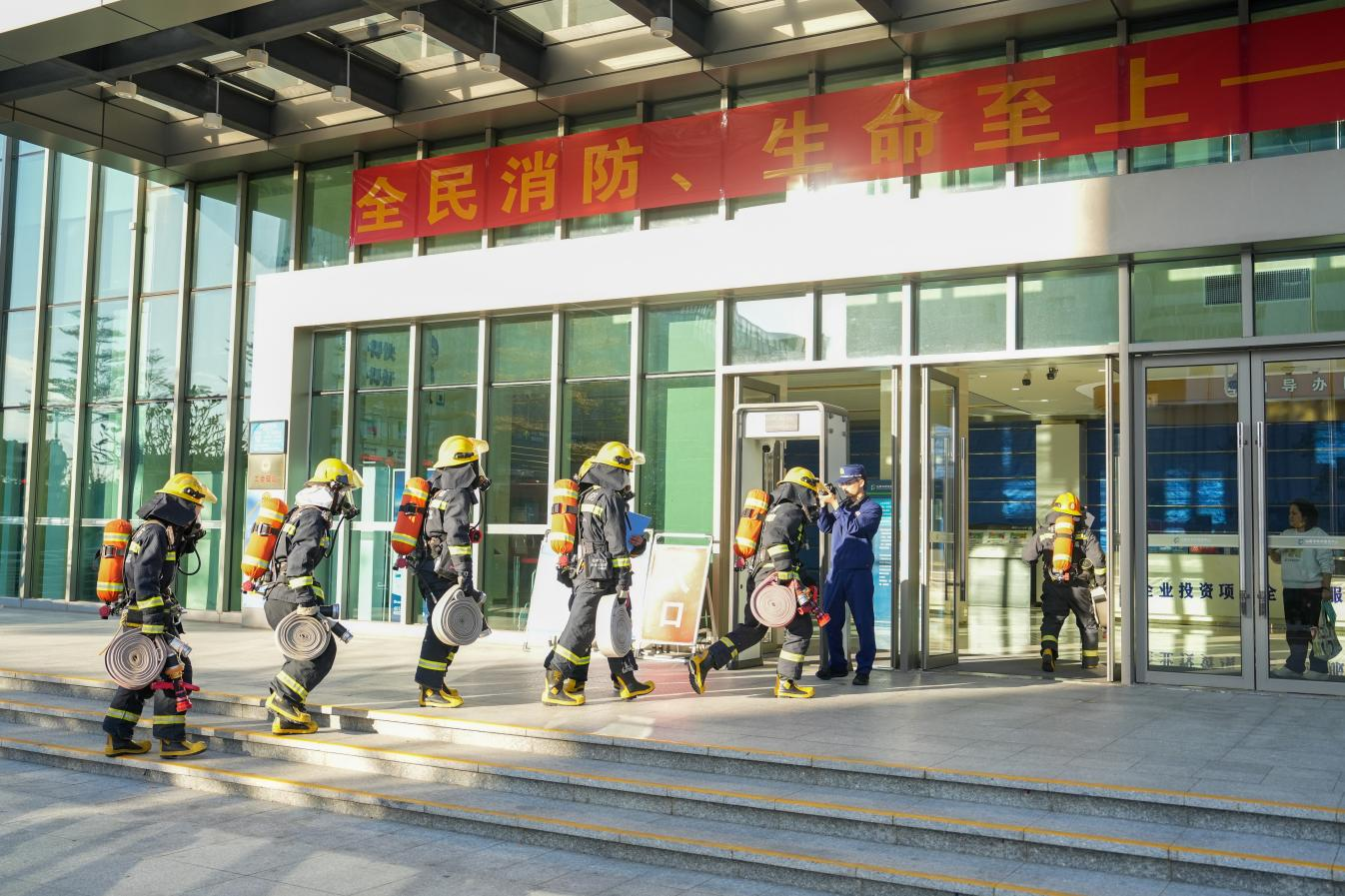 汕尾市市民服務(wù)廣場(chǎng)開展2025年消防應(yīng)急演練